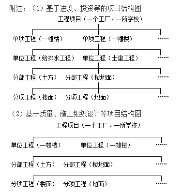 1.一些居住建筑開發(fā)項目,可根據(jù)建設(shè)的時間對項目的結(jié)構(gòu)進行逐層分解,而對一些工業(yè)建設(shè)項目往往按其生產(chǎn)子系統(tǒng)的構(gòu)成對項目的結(jié)構(gòu)進行逐層分解。
