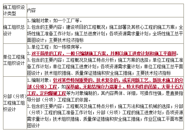 考點(diǎn):施工組織設(shè)計(jì)的內(nèi)容