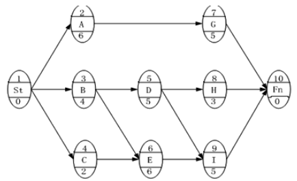『答案解析』本題考查的是關(guān)鍵工作、關(guān)鍵路線和時差。關(guān)鍵線路只有1條B-E-I,計算工期為4+6+5=15天;G工作的總時差=15-11=4天,G工作的自由時差=15-11=4天;D工作最早完成是第9天,I工作最早開始是第10天,工作D、I之間有1天的時間間隔;H工作的自由時差=15-(4+5+3)=3天。