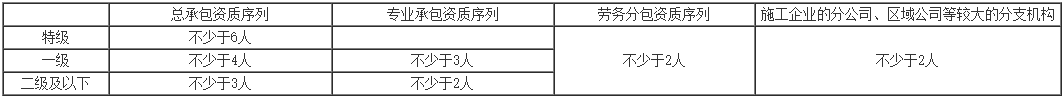 D.二級和二級以下資質(zhì)企業(yè)不少于3人