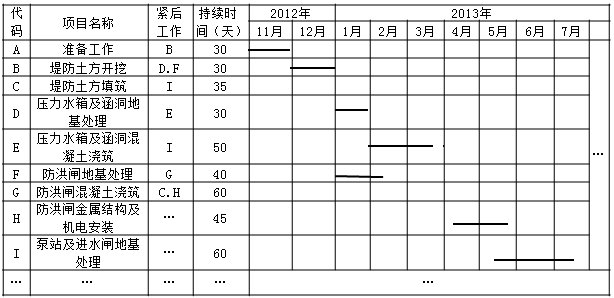事件1:根據(jù)施工方案及安全度汛要求,承包人編制了進(jìn)度計(jì)劃,并獲得監(jiān)理人批準(zhǔn)。其部分進(jìn)度計(jì)劃見表1(不考慮前后工作的搭接,每月按30天計(jì))。