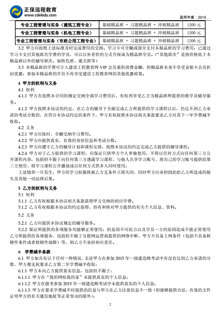 一級(jí)建造師“精品班”協(xié)議書