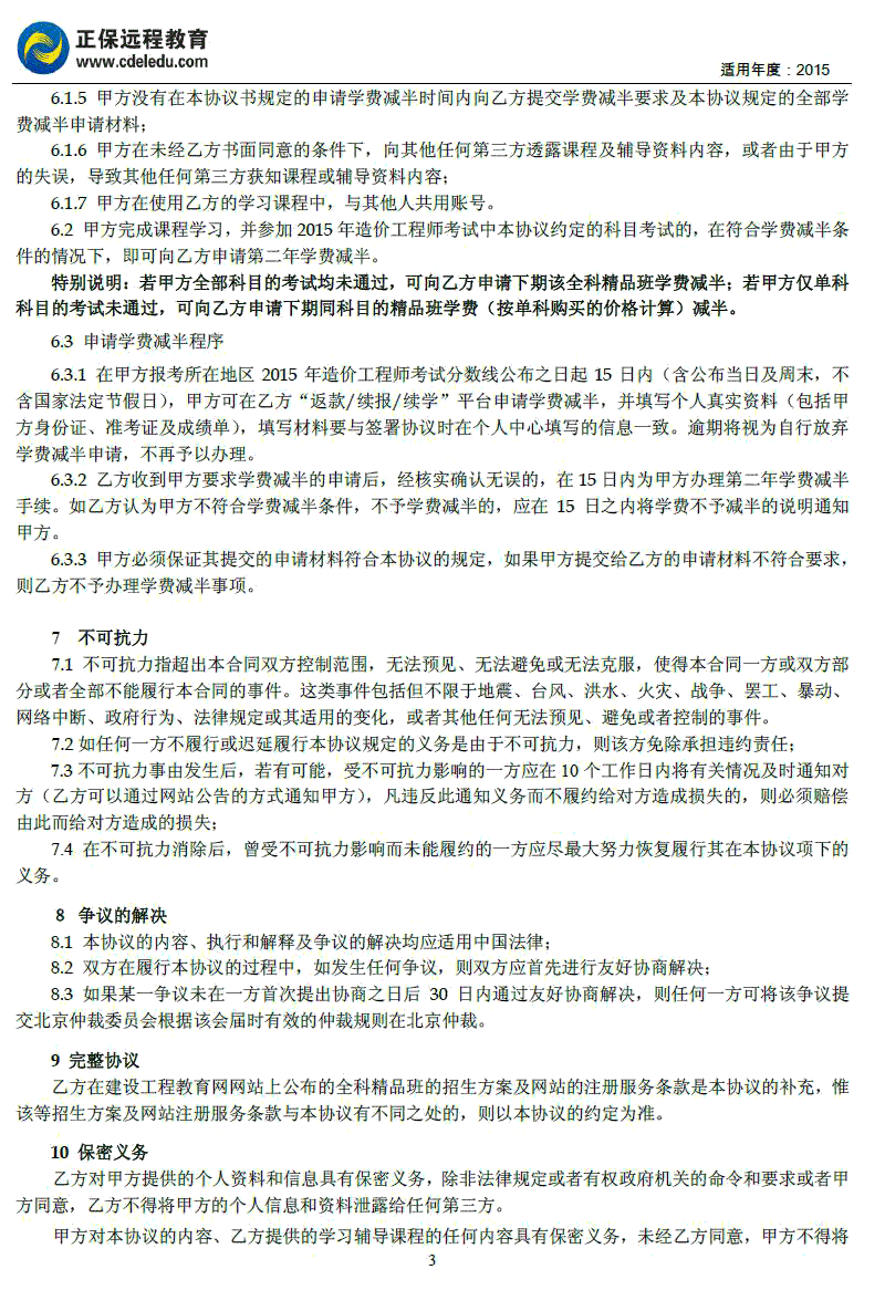造價工程師“全科精品班”協(xié)議書