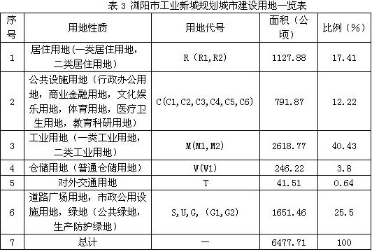 農(nóng)業(yè)是基礎(chǔ),工業(yè)是主導(dǎo)。工業(yè)新城的發(fā)展正是建立在長(zhǎng)沙國(guó)家生物產(chǎn)業(yè)基地和湖南瀏陽(yáng)制造產(chǎn)業(yè)基地的發(fā)展基礎(chǔ)之上,并將繼續(xù)以?xún)苫氐陌l(fā)展為主導(dǎo),新城工業(yè)發(fā)展離不開(kāi)城市建設(shè)用地這一稀缺性載體。因此,不僅要高效利用新城農(nóng)業(yè)用地,更要集約利用新城建設(shè)用地,尤其是建設(shè)用地中的工業(yè)用地。從表1可見(jiàn),工業(yè)新城總體規(guī)劃用地面積中,由于林地占絕大比例,城市建設(shè)用地僅占總體規(guī)劃用地的16.89%,包括遠(yuǎn)景城市建設(shè)用地在內(nèi)也只有23.68%.在這比重有限的建設(shè)用地中,根據(jù)《瀏陽(yáng)工業(yè)新城總體發(fā)展規(guī)劃》公布的“規(guī)劃城市建設(shè)用地一覽表”(如表3所示),工業(yè)用地雖占新城建設(shè)用地的40.43%,但僅占新城總體規(guī)劃用地的6.82%.總量有限的工業(yè)用地遠(yuǎn)遠(yuǎn)滿(mǎn)足不了新城工業(yè)項(xiàng)目發(fā)展的用地需求。