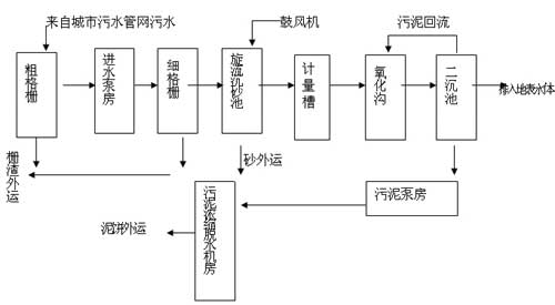 重慶市南川污水處理廠確定的工藝流程圖如下: