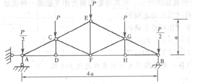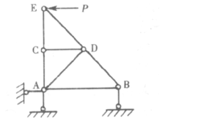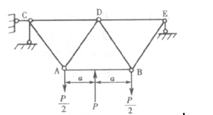 提示:用節(jié)點法,通過E點分析可知CE桿受壓, CD為零桿,AC桿受力性 質(zhì)與CE桿相同。