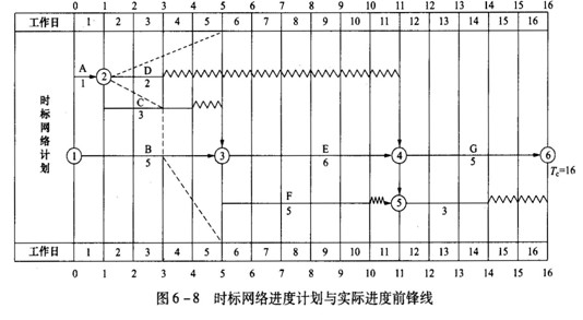 1.繪制實際進度前鋒線記錄進度執(zhí)行情況。