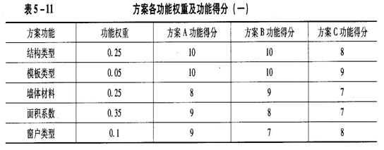 方案各功能的權(quán)重及各方案的功能得分,如表5-11所示。