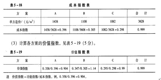 ?。?)計算各方案的成本指數(shù),見表5-18(5分)。