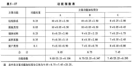 (1)計算各方案的功能指數(shù),見表5-17(5分)。