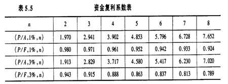 貸款月利率為1%,資金復(fù)利系數(shù)見表5.5.