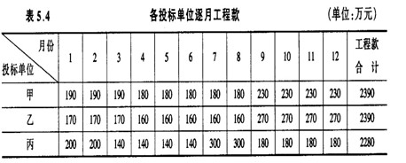 表5.4 各投標(biāo)單位逐月工程 ?。▎挝唬喝f元)
