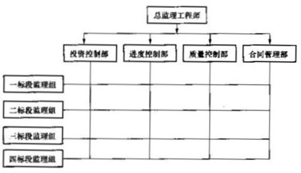 某市政工程分為四個施工標段。某監(jiān)理單位承擔了該工程施工階段的監(jiān)理任務,一、二標段工程先行開工,項目監(jiān)理機構(gòu)組織形式如圖2-2所示