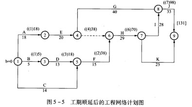 答案:關(guān)于工期順延(工期順延后的工程網(wǎng)絡(luò)計(jì)劃圖,如圖5 -5所示)和經(jīng)濟(jì)索賠。