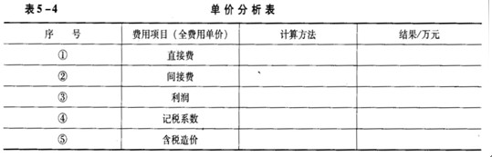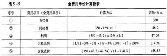 3.計算新的全費用單價,將計算方法和計算結果填入表5-4中相應的空格中。