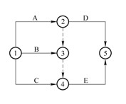 5.已知某工程雙代號網(wǎng)絡(luò)圖如下圖所示,由A、B、C、D、E五項工作組成。該網(wǎng)絡(luò)圖中,E工作的緊前工作為( ?。?。