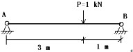 但這道題也可不必計算,由分析得答案。因支座A.B反力總和為1 kN,故RA不可能為1kN;又由荷載P不作用于跨中,RA與RB不應相等,故RA不可能是1/2 kN.剩下3/4與1/4中挑一個,顯然RA離P作用點較遠,受力應小一點,故只有1/4是正確的,答案應為D.