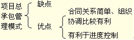 缺點(diǎn):(1)由于項(xiàng)目總承包管理單位與設(shè)計(jì)、施工單位是總包與分包關(guān)系,后者才是項(xiàng)目實(shí)施的基本力量,所以監(jiān)理工程師對分包的確認(rèn)工作就成了十分關(guān)鍵的問題。