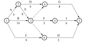 10.某分部工程雙代號網(wǎng)絡(luò)計劃如下圖所示。由于設(shè)計圖紙的變更,造成2-4工作延誤6天,則總工期將延長( )。