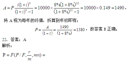 解析:已知某年初有資金P,名義利率為r,一年內(nèi)計息m次,則計息周期利率為i=r/m.根據(jù)一次支付終值公式可得該年的本利和F,即: