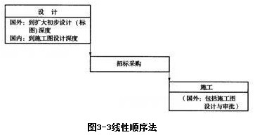 1)線性順序法,也稱作傳統(tǒng)的項(xiàng)目實(shí)施過(guò)程(如圖3-3所示)。
