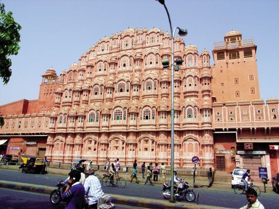 齋普爾位于印度西北部,只要看看這里用于建筑的玫瑰紅砂巖,就知道為什么拉賈斯坦邦的首都有“粉色之都”之稱了。這些粉色砂巖的宮殿有大約1千多個窗戶,供皇室女子觀看下面繁忙的集市。