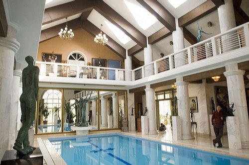 在王中軍7畝大的院子和2層歐式小樓里,到處都是各式各樣的銅雕和中國現(xiàn)代油畫,灰白石料建造的房屋及寬敞的庭院表現(xiàn)出強烈的西方風格。