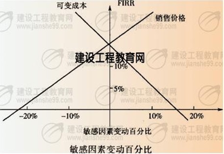 答案解析:內(nèi)部收益率隨可變成本的變化曲線與基準(zhǔn)收益率線相交的交點就是可變成本變化的臨界點,用該點對應(yīng)的不確定因素的變化率表示,用該變化率換算的不確定因素的變化數(shù)值就成為臨界值,可以估算出可變成本的臨界點小于10%。則選擇A選項。參見教材P396。