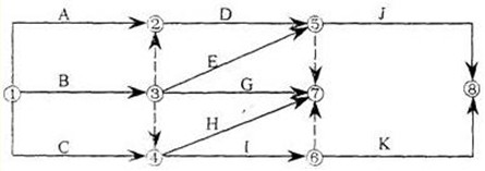答案解析:本題考查的是雙代號網(wǎng)絡(luò)圖的繪圖規(guī)則。有⑦⑧兩個終點節(jié)點。虛工作③②箭頭的節(jié)點編號數(shù)字小于箭尾節(jié)點編號的數(shù)字。參見教材P214、215。