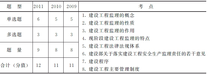 本章考生主要掌握有關建設工程監(jiān)理的性質、作用和特點,這是歷年考試的重點,尤其是建設工程監(jiān)理性質的內容。近年來有關建設程序和建設工程管理制度的內容也成為了命題的重點,考生也必須掌握。本章在試題中所占分值在11分左右。