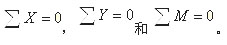 3.一般平面力系的平衡條件還要加上力矩的平衡,即作用在物體上的力對某點(diǎn)取矩時(shí),順時(shí)針力矩之和等于反時(shí)針力矩之和。平面力系的平衡條件是:![]()