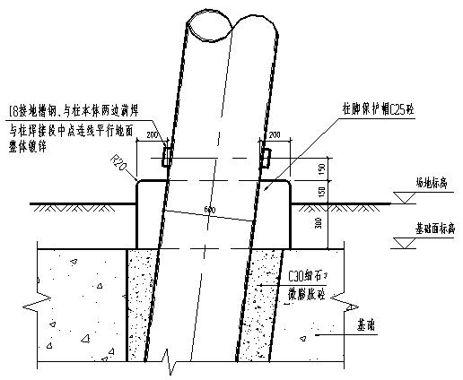圖2-1 構(gòu)架人字柱柱腳保護(hù)帽詳圖