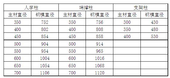 表2-1 常用鋼管及鋼模直徑