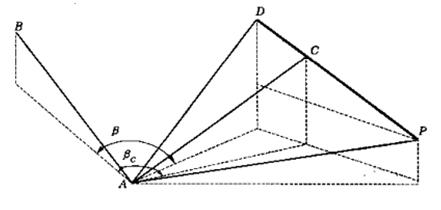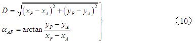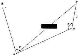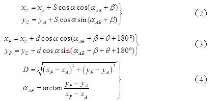 β —— 邊AC與已知邊AB的水平夾角,當β和θ為右角時,式(4)取“-β”和“-θ”。