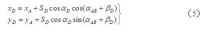 式中 βC、βD —— 邊AC和AD與已知邊AB的水平夾角,當未知邊AC和AD在已知邊AB的右側(cè)時,式中取“-βC”和“-βD”。