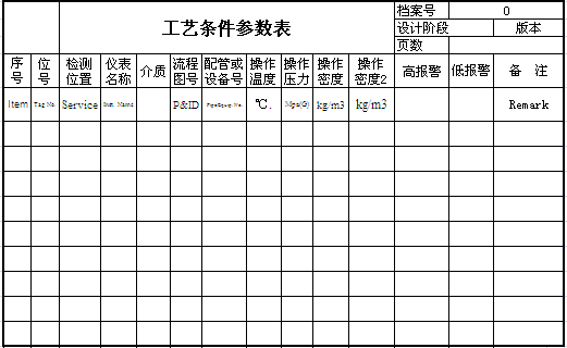 此工藝條件參數(shù)表適用于各種工藝。