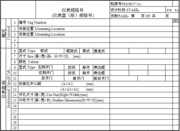 儀表盤柜規(guī)格書