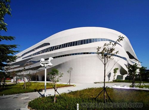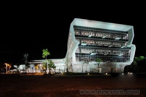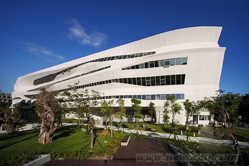 建筑流線型的外觀和不斷變化的空間運(yùn)動(dòng)模式在向外伸出的會(huì)議空間上得到了完美的闡釋,巨大的樓梯連接著廣場(chǎng)和“L”型的建筑,環(huán)繞著周圍迷人的景觀。與曼哈頓五點(diǎn)區(qū)挑戰(zhàn)傳統(tǒng)設(shè)計(jì)和建造施工的特點(diǎn)相似,該圖書館不斷挑戰(zhàn)著臺(tái)灣建筑設(shè)計(jì)的極限。為了用彎曲的平板和有機(jī)樹樁形的柱子實(shí)現(xiàn)建筑外觀自由式的結(jié)構(gòu),建筑師將最新的3D設(shè)計(jì)軟件和實(shí)物模型技術(shù)融入到了建筑的設(shè)計(jì)當(dāng)中。