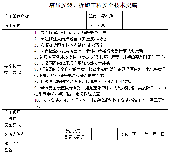 塔吊工程施工安全技術(shù)交底(表格)