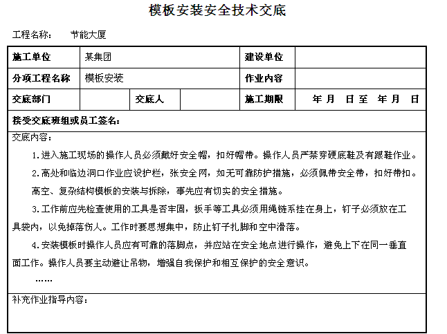 詳情請下載附件模板安裝安全技術(shù)交底
