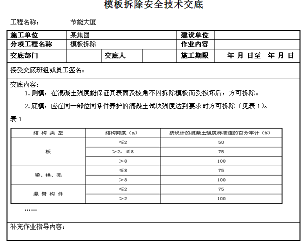 模板拆除安全技術交底