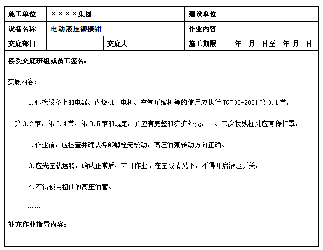 電動液壓鉚接鉗安全操作規(guī)程技術(shù)交底