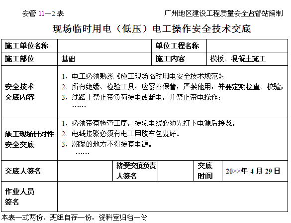 臨時用電(低壓)電工操作技術交底