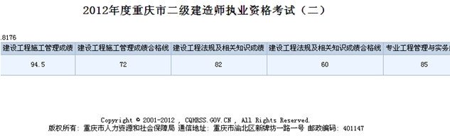 今年六月份參加重慶市二級建造師考試(建筑專業(yè)),成績?nèi)缦拢?/p>