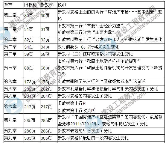 編輯提示:建設(shè)工程教育網(wǎng)為大家整理2013年房地產(chǎn)估價師教材變化,以下是房地產(chǎn)開發(fā)經(jīng)營與管理新舊教材對比表。
