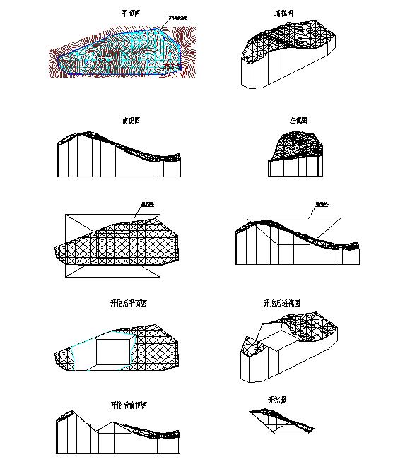 采用三維實體技術(shù)由于在應(yīng)用過程中要使用大量布爾運算,對機器的性能要求高,難于對大范圍地形生成實體。對開挖體的制作由于AutCAD軟件本身的局限難于通過編程手段生成復(fù)雜開挖體。開挖過程往往與地質(zhì)情況有關(guān),如何將地質(zhì)信息放入地面模型中達到分層開挖的計算還要做進一步探討。