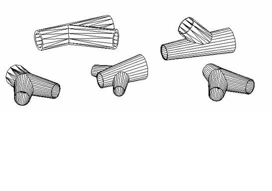 2、三維岔管的參數(shù)化設(shè)計在水電站的引水管路設(shè)計中經(jīng)常碰到岔管的設(shè)計,如何表示岔管空間位置、形態(tài)、相貫線,是設(shè)計中的一個難題。采用三維建模技術(shù)可以很容易解決這些難題,并且可以將三維模型導(dǎo)入結(jié)構(gòu)分析軟件進行有限元的分析。