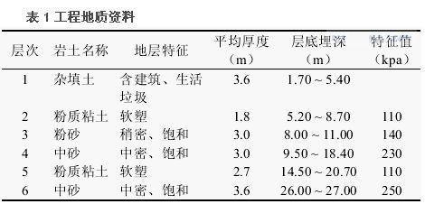 土層分布情況,該工程地質(zhì)概況是根據(jù)回填土方?jīng)]有全部完成時,某一單體地質(zhì)勘察報(bào)告揭示,土層分布大至為6層,見表1。