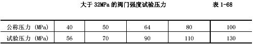 b公稱壓力大于或等于32MPa的閥門其試驗(yàn)壓力按表1-68;