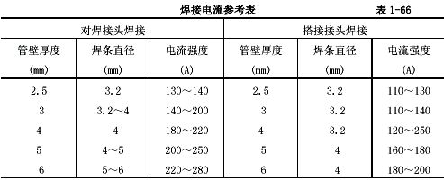 c根據(jù)管材成分和壁厚等因素,要正確選用焊條種類、直徑和焊接電流強(qiáng)度。參見表1-68和表1-66。